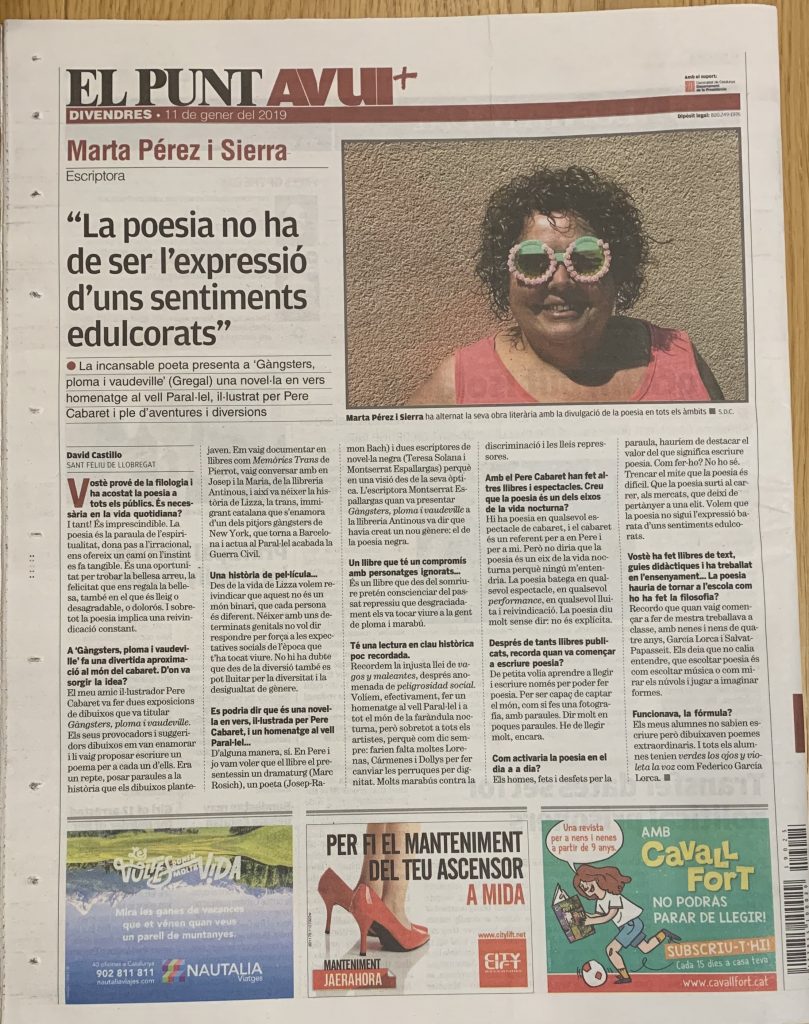 A la contra d’El Punt Avui – divendres 11 de gener13 enero, 2019|By: Marta Pérez Sierra L’escriptor i poeta David Castillo m’entrevista a El Punt Avui. Feu clic aquí per llegir-la Moltes gràcies, David! Tinc bons amics! Mireu: Tweet Deja un comentarioDebes registrarte para dejar un comentario