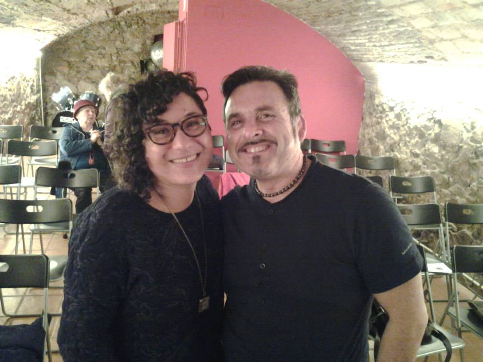 Les poetes amb Lourdes Borrell, directora de l’Aula i el jove compositor Adrià. A les mans, l’aquarel·la d’Antonio Fortunyo, poeta i pintor que col·labora amb Contrapunt poètic.