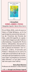 Anna Ruiz Mestres ressenya «Dones, arbres i poesia» a El Cargol