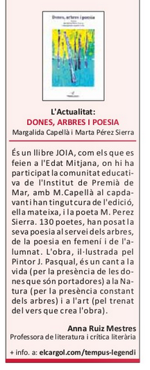 Anna Ruiz Mestres, autora de l’epíleg de Dones, arbres i poesia, publica una ressenya del llibre al Magatzinè del Penedès El Cargol
