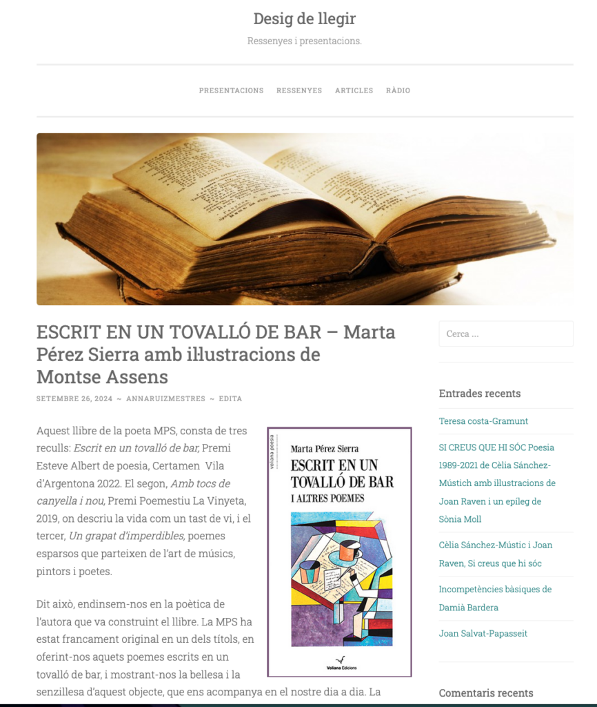 Publicada al web d’El Cargol i al seu web Desig de llegir.