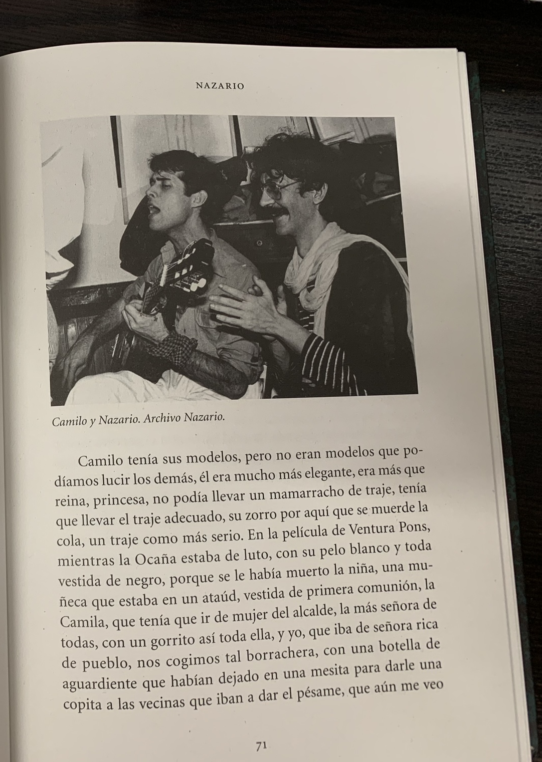 Camilo. És perillós abocar-se està escrit des de la veu de diferents amics que van conviure d’una manera o altra amb en Camilo. En Camilo, el més misteriós del triumvirat Camilo, Ocaña, Nazario. Amb posat aristòcrata i ànima victoriana, en Camilo acompanyava arreu els seus amics i provocava, instruïa sense voler i feia de la seva vida una performance contínua. D’ell, en el llibre se n’ofereixen moltes versions. Ara no les enumeraré, és ben clar que era una persona amb una vida interior intensa, amb un deix de Visconti en el posat lànguid, un gran narrador, que va triar SER en aquell moment, sense després, sense ànim de perviure, només SER, fins a les últimes conseqüències. En aquells anys setanta i vuitanta, quan la revolta gai es va haver d’enfrontar a totes les repressions, inclosa l’esquerra, massa moderada, calia una renovació, i els artistes andalusos Camilo, Ocaña i Nazario la van protagonitzar, segurament sense proposar-s’ho, portats pel seu tarannà i les seves capacitats artístiques, transgressores i vitals.