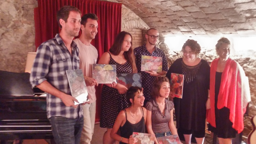 Les noies de «Fora de text» i els nois d’»Ánima Cármina» amb originals de l’artista plàstic Lluís Rueda. A la foto amb Lourdes Borrell i amb mi en acabar l’actuació A l’Aula de Música i Teatre Musical, Contrapunt poètic ha gaudit amb la fusió de teatre i poesia de «Fora de text» i poesia i …