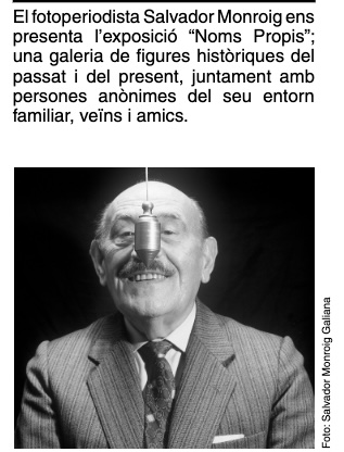 Centre Cívic Joan Oliver – 2 d’octubre – NOMS PROPIS L’Aida González i jo vam tenir la satisfacció d’oferir al públic del Centre Cívic Pere Quart un espectacle en el marc de l’exposició de Salvador Montroig, «Noms Propis». El fotoperiodista Salvador Monroig, amb més de cinquanta anys de professió en diversos mitjans del país, va …