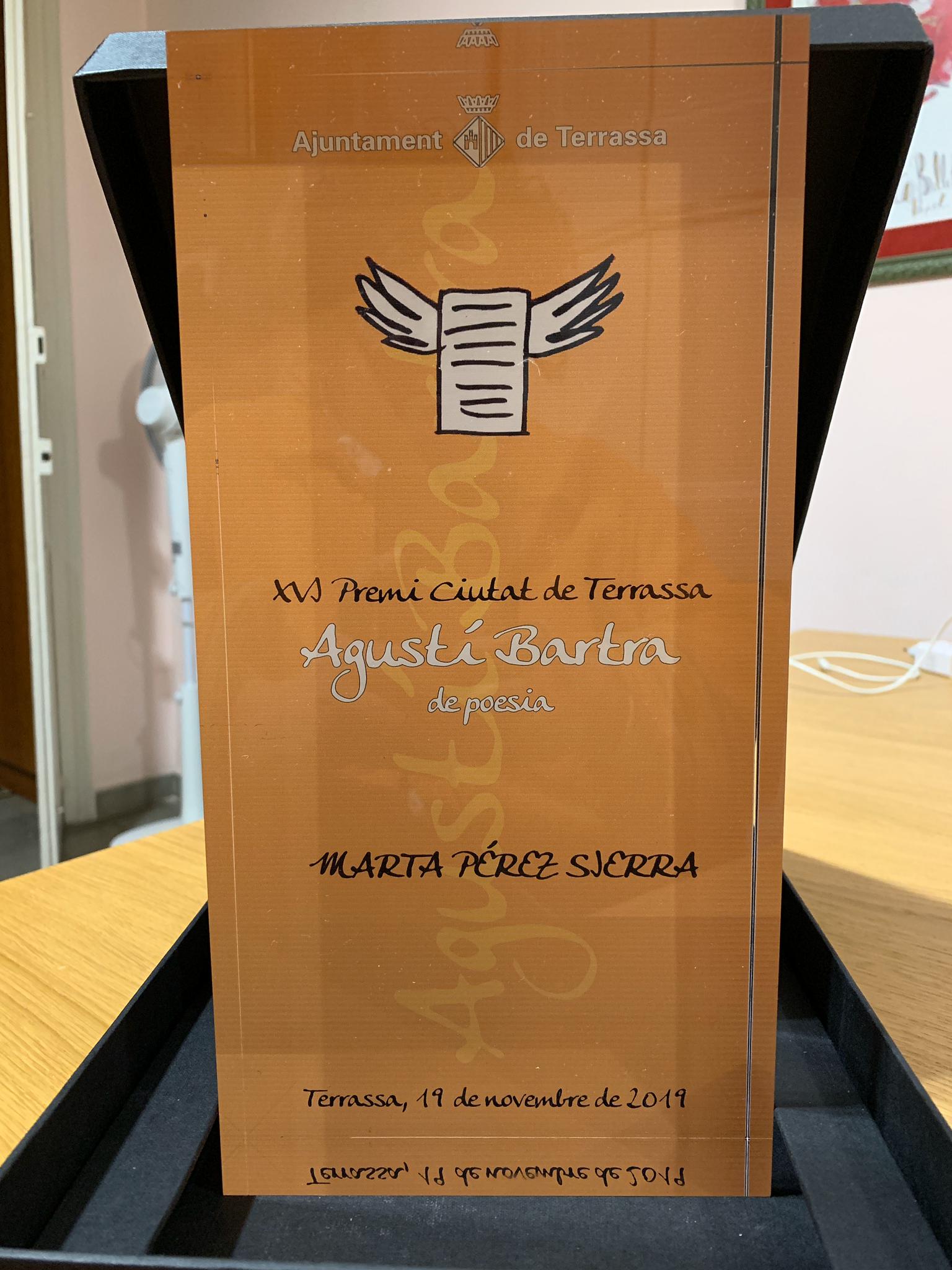 Les fotografies són de l’amic Ferran d’Armengol Tan feliç i emocionada! Amb el llibre de poemes Punta de plom el jurat del XVI Premi Agustí Bartra Ciutat de Terrassa m’atorga el premi. Gràcies! Va ser a la Biblioteca Central de Terrassa el dimarts 19 de novembre de 2019 Tweet