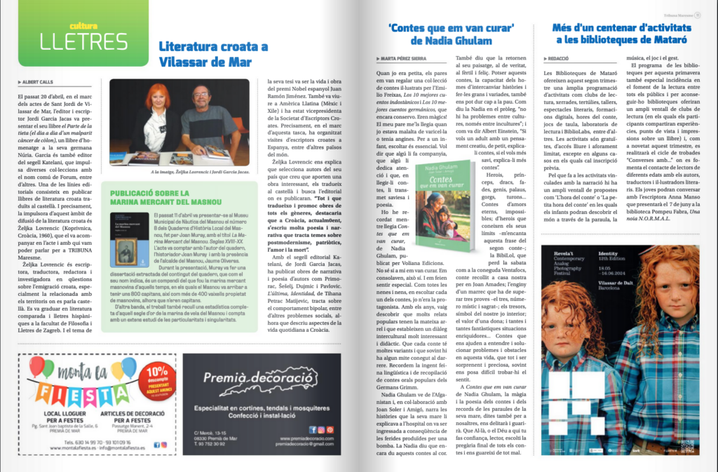 Gràcies Tribuna Maresme, per publicar al n. 401 (maig, 2024) la ressenya que vaig escriure sobre Contes que em van curar (Voliana Edicions, 2024) de Nadia Ghulam