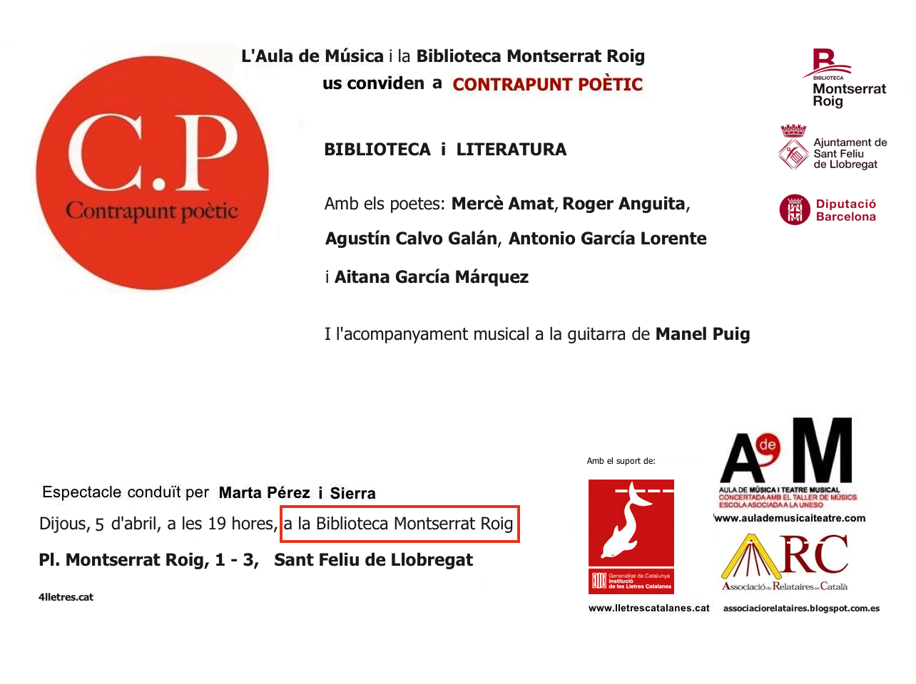 Contrapunt poètic ha fet la sessió del mes d’abril a la Biblioteca Montserrat Roig de Sant Feliu. Gràcies per acollir-nos!