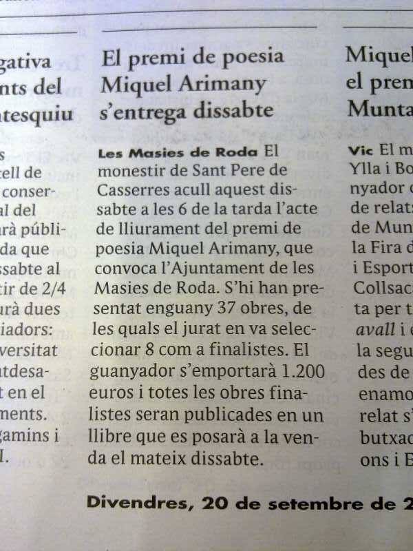 El meu recull de poemes M’he empassat la lluna ha quedat finalista del IV Premi Miquel Arimany de Poesia 2013 i forma part del llibre col·lectiu El corriol de les paraules.