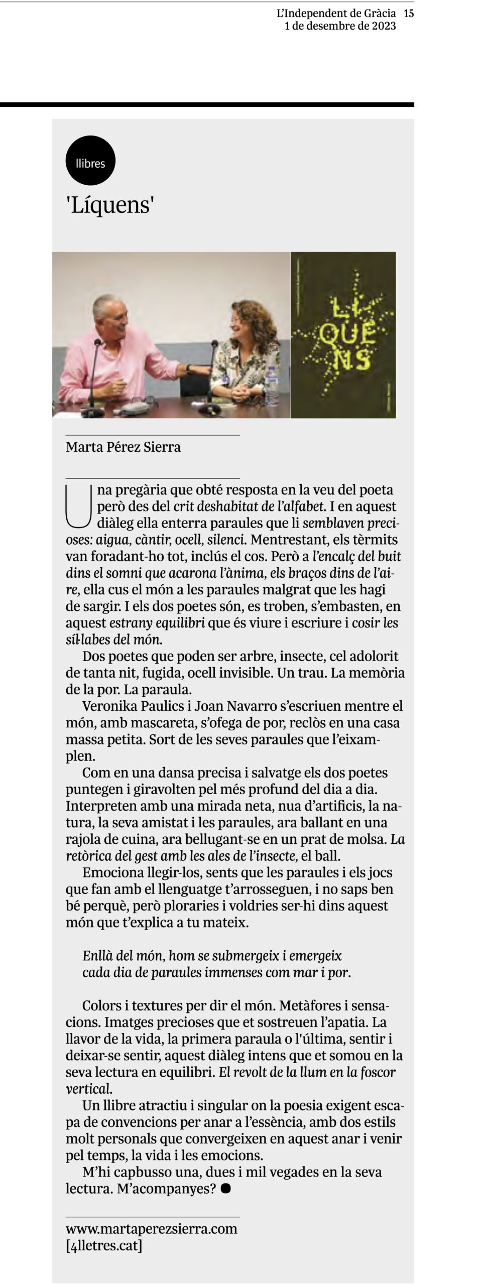 Líquens (edicions del buc, 2023) de Veronika Paulics i Joan Navarro