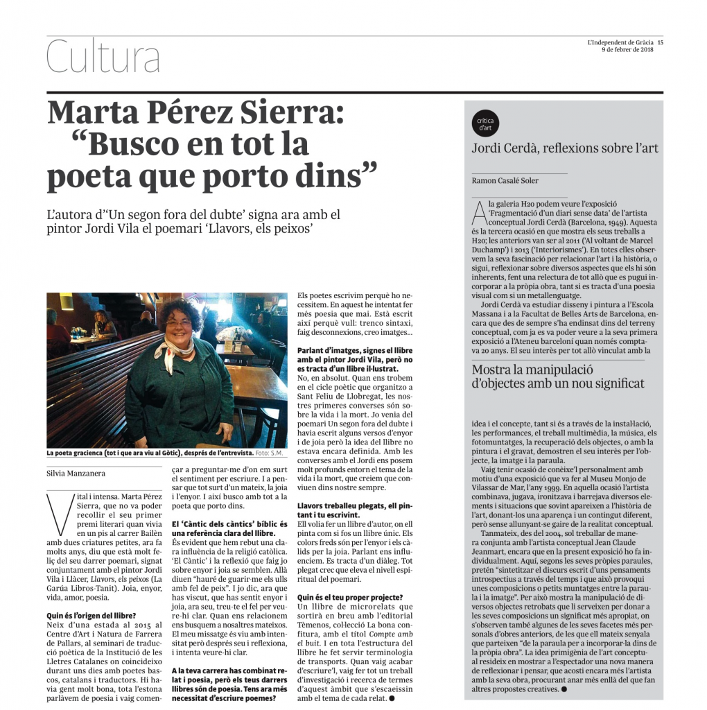 «Llavors, els peixos» al Diari L’Independent de Gràcia 9 febrero, 2018|By: Marta Pérez Sierra Sílvia Manzanera m’entrevista pel diari de Gràcia, L’Independent. Gràcies, Sílvia! Tweet Deja un comentario Debes registrarte para dejar un comentario