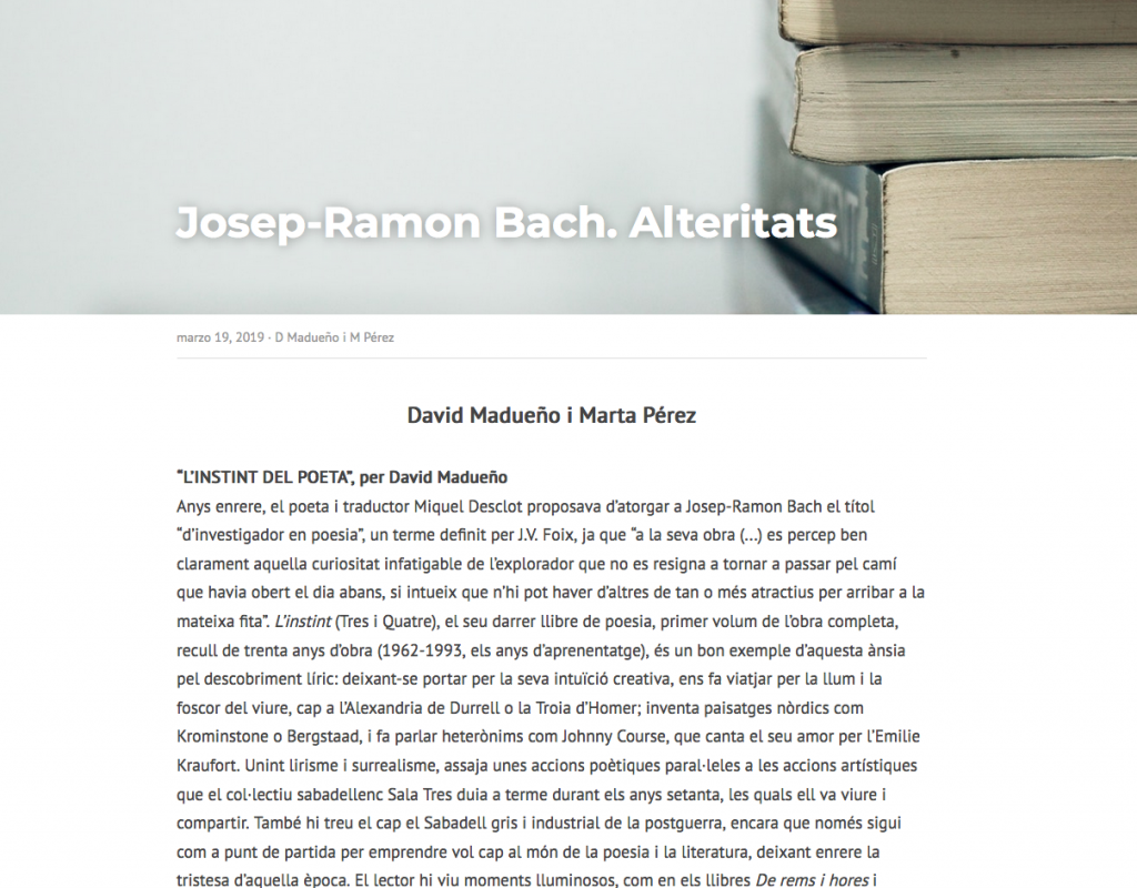 En David Madueño i jo llegim a Josep-Ramon Bach i ho expliquem a la revista Quadern, número 216 dedicat a la poesia.