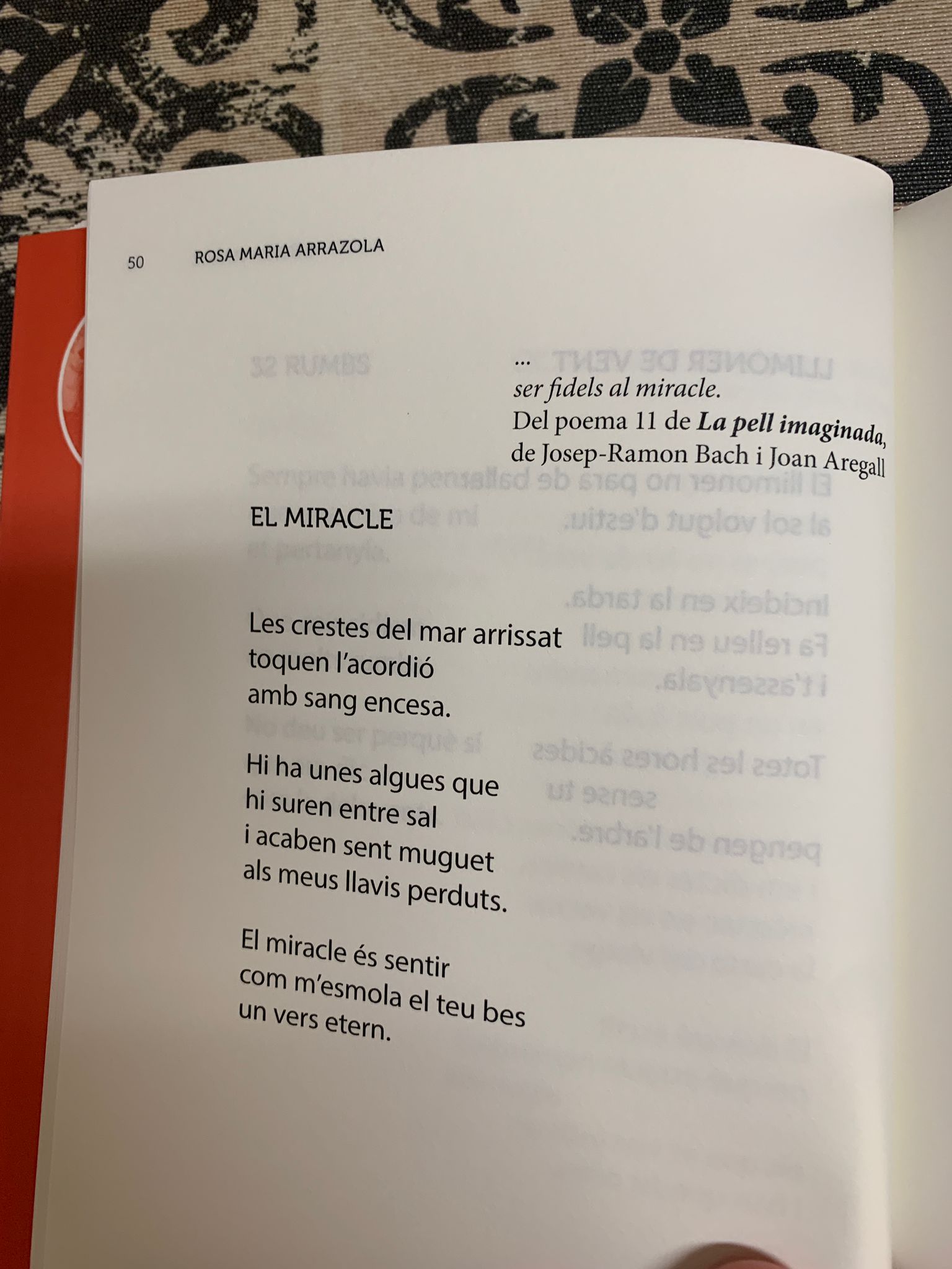 La vida, que bat en cada bocí de natura, és el record d’ell. El vent que suaument frega la pell, és ell. L’albada és ell. La sal i el llimoner. El peix i la música. El muguet i el miracle. Ell que es va fer de vent, sobtadament.