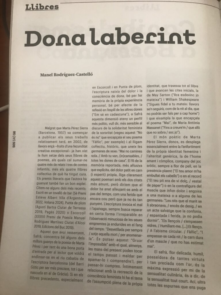 Manel Rodríguez Castelló ressenya Safrà a la revista Saó de finals de setembre.