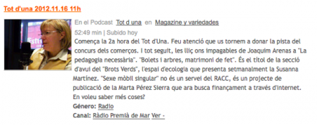 Ràdio Premia de Mar28 noviembre, 2012|By: Marta Pérez Sierra [soundcloud url=»http://api.soundcloud.com/tracks/69195856″ params=»auto_play=false&show_artwork=true&color=ff009a» width=»100%» height=»166″ iframe=»true» /] Tweet Deja un comentarioDebes registrarte para dejar un comentario