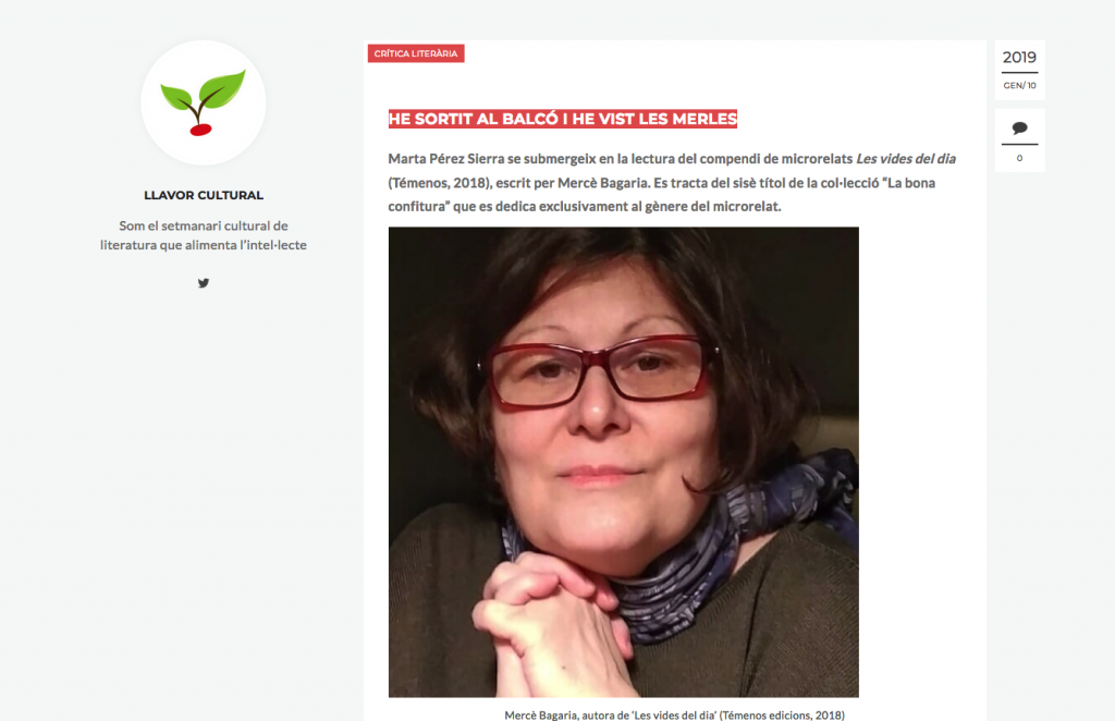 «He sortit al balcó i he vist les merles» és el títol de la ressenya que he escrit per a «Les vides del dia» (Témenos edicions, 2018) de Mercè Bagari i que s’acaba de publicar a la revista Llavor Cultural. Gràcies Llavor!