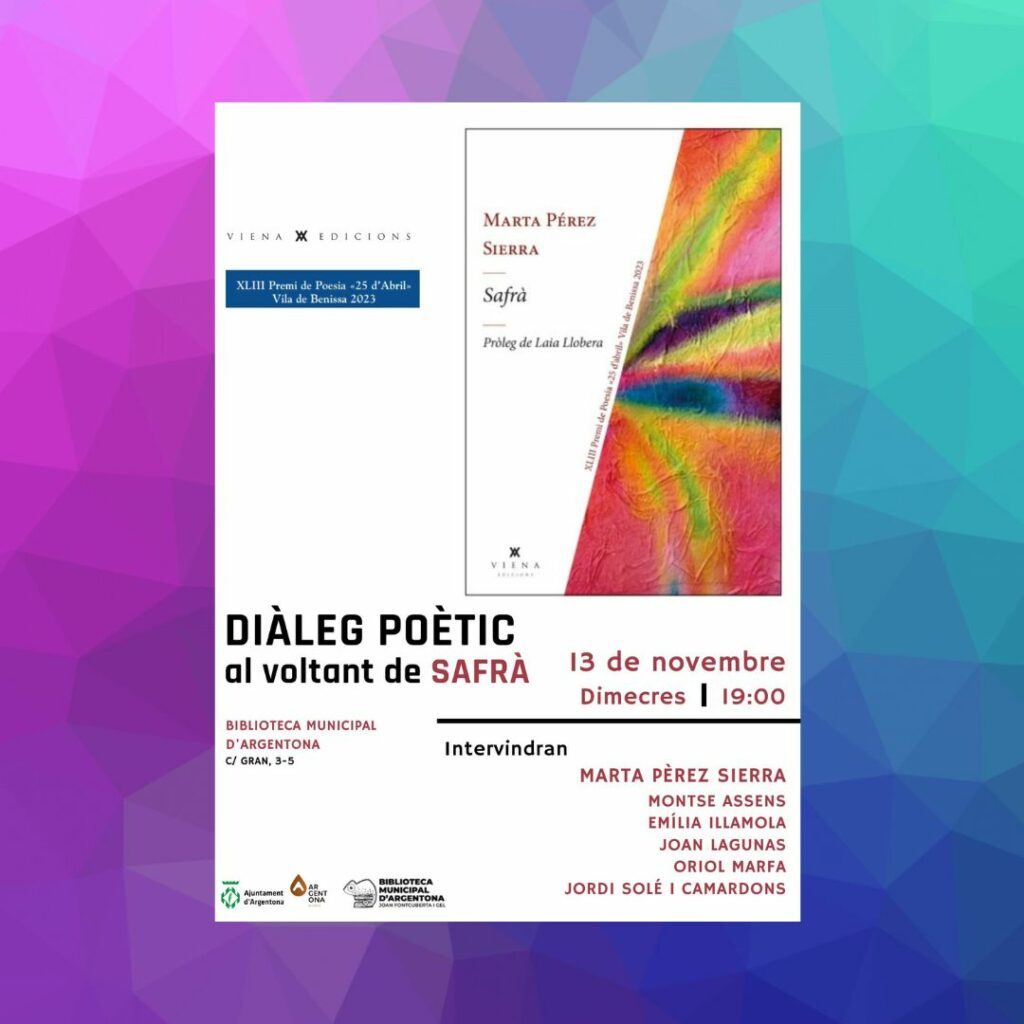 Presentarem SAFRÀ (Viena Edicions,2024) a la Biblioteca Municipal Joan Fontcuberta i Gel d’Argentona.