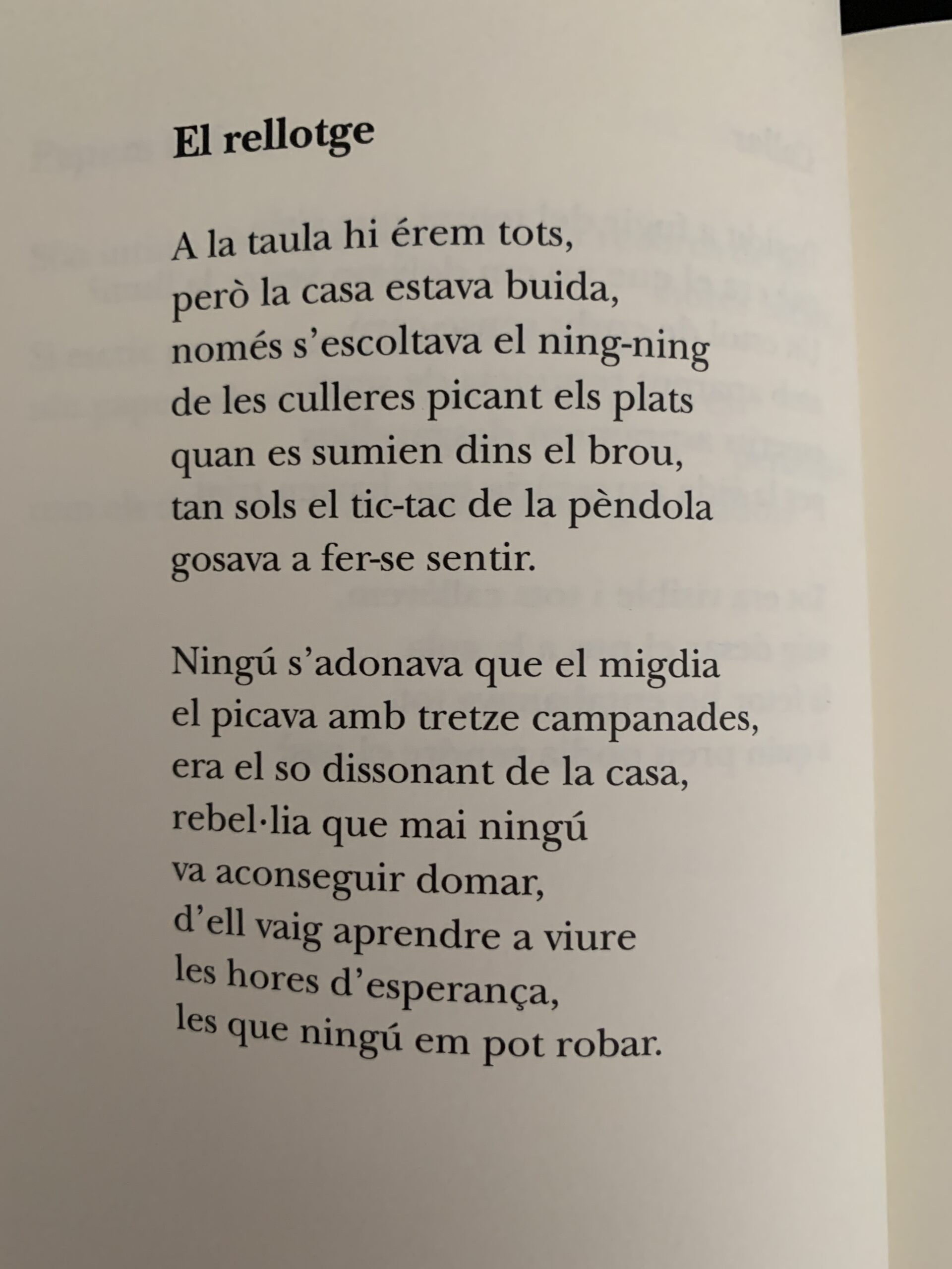 El temps no cura, diu el poeta, però ell se’l fa a la seva manera per guarir-se. S’inventa una nova campanada on refugiar-se, on ser lliure. Lluny del déu opressor i de tots els que l’han creat, perquè aquest déu només existeix en la ment perversa dels que volen controlar-ho tot. Una tretzena campanada lluny d’hores obscenes. La soledat, la malaltia, la família, el fet de sobreviure… Toquen moltes campanes en el llibre de Pilio, Toca a Completes la campana de Santa Mònica, el dia s’acaba i amb el seu tany t’emociones. Amb el poeta imagines la possibilitat d’un altre temps on néixer de nou ni que sigui una horeta. Un espai on cap jutge decreti que la campana no ha de sonar / quan es faci la nit fosca.