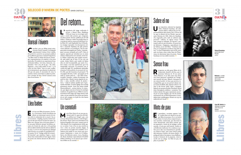 El Punt Avui – Selecció d’hivern de poetes28 enero, 2017|By: Marta Pérez Sierra El poeta i periodista David Castillo en parla a El Punt Avui Tweet Deja un comentarioDebes registrarte para dejar un comentario