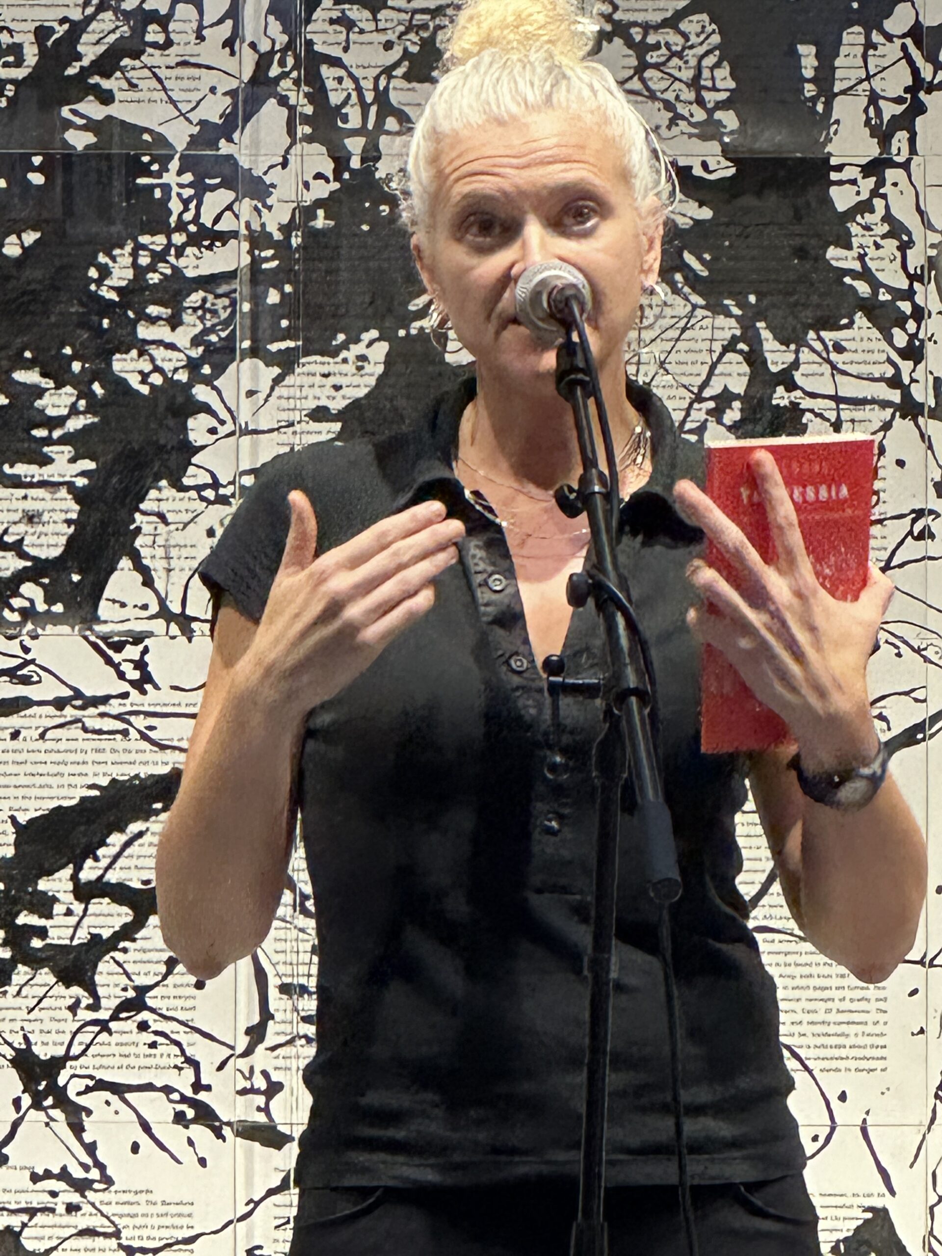 La poeta arrossega el mar a cada una de les places de Gràcia. Alça els braços i en cada remada coordina la respiració amb les paraules, mentre les onades es desfan arran de la vorera o en el sorral dels menuts.